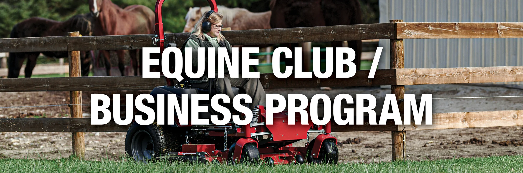 The Equine Club Program applies to equine clubs and business properties that are established in the equine industry. When an authorized Dealer discounts a walk-behind or ride-on power unit to an applicable customer, Briggs & Stratton will contribute a portion of the cost to the dealer.